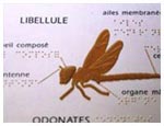 Le texte en braille n'est pas la traduction pure et simple du texte typographique ; en effet, si une plaque propose de décrire un oiseau, la légende en braille indiquera qu'il est représenté de profil pour permettre aux aveugles d'effectuer une lecture plus rapide du dessin de l'oiseau schématisé.